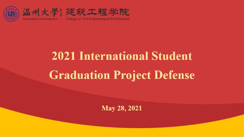 On the afternoon of May 28th, College of Civil Engineering and Architecture held a 2017 international undergraduate graduation design defense students majoring in civil engineering. Dr. Zhao Junliang, director of international education office, Dr. Wu Zexiang, Dr. Ye Changpeng, Dr. Fan Ning and Dr. Lin Heng worked as graduation defense team member.