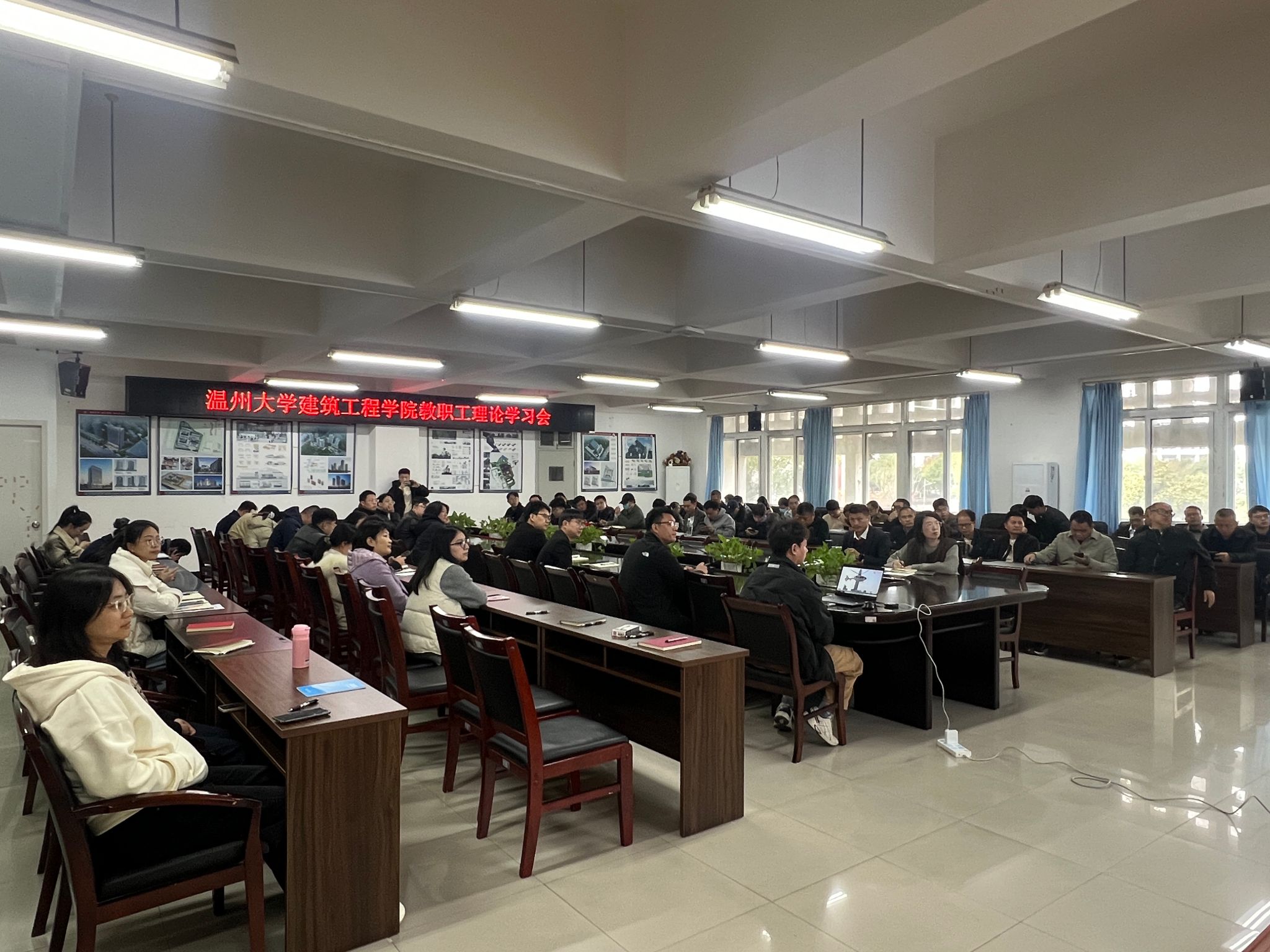 召开全体教职工理论学习会,会议由学院党委书记王壮主持。