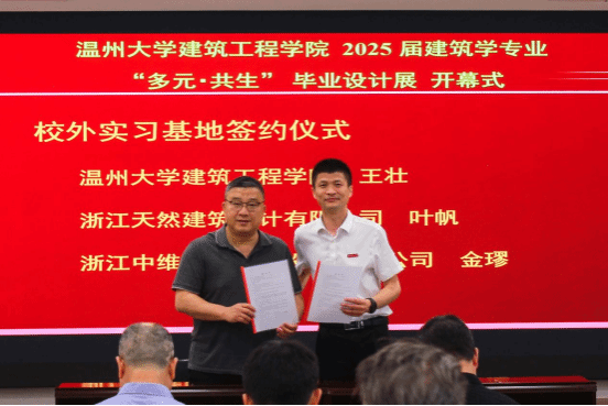 与浙江天然建筑设计有限公司、浙江中维建筑工程设计有限公司成功共建校外实习基地,并与温州市建筑业联合会签署就业战略协议,有力促进了人才链与产业链的深度融合。此外,学院还聘请了林道友等5位行业专家作为校外导师,进一步完善“双师型”育人机制。