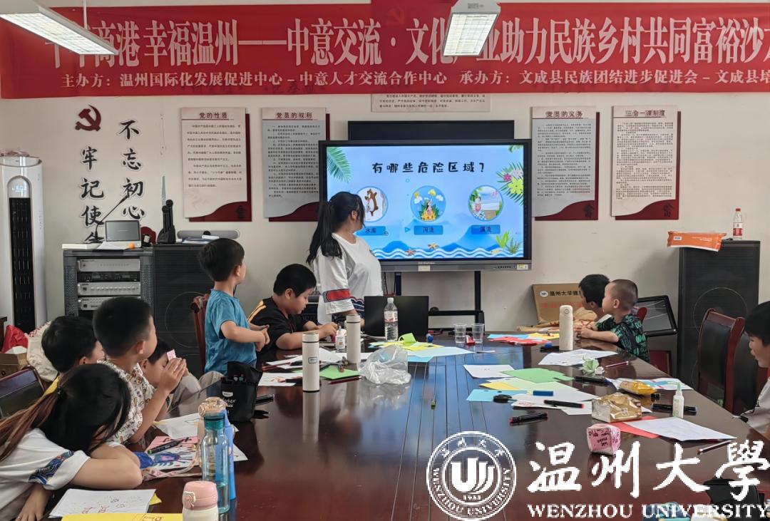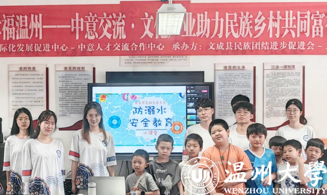 畲漫浙水暑期社会实践队在温州市文成县黄坦镇培头村开展了以“拥生命之波,共守防溺水”为主题的实践活动,旨在为儿童敲响安全警钟,提高当地学生和村民的防溺水意识,助力当地防溺水救援体系建设。