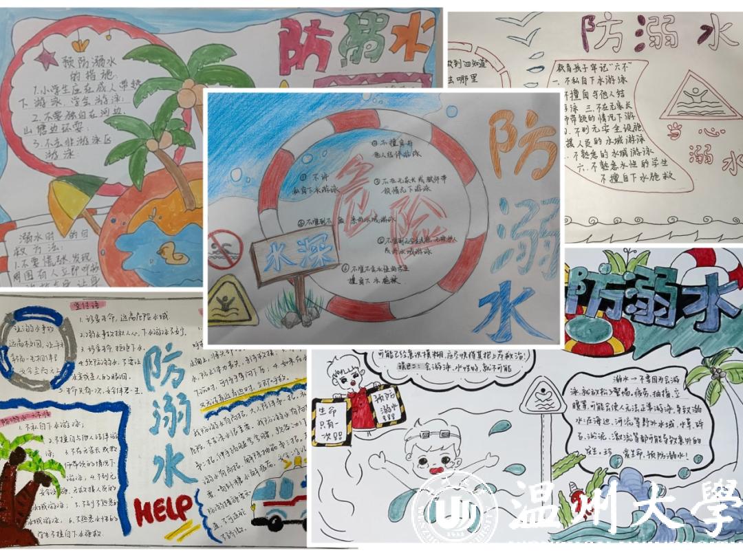 此外,实践队还与学生们一起绘制了防溺水手抄报。通过色彩鲜艳、图文并茂的手抄报向学生与村民传递了防溺水的重要性,增强乡村儿童的防溺水意识和自护自救能力,引导乡村孩童树立防溺水安全意识,增强自我管理和约束能力,争当防溺水安全小标兵。