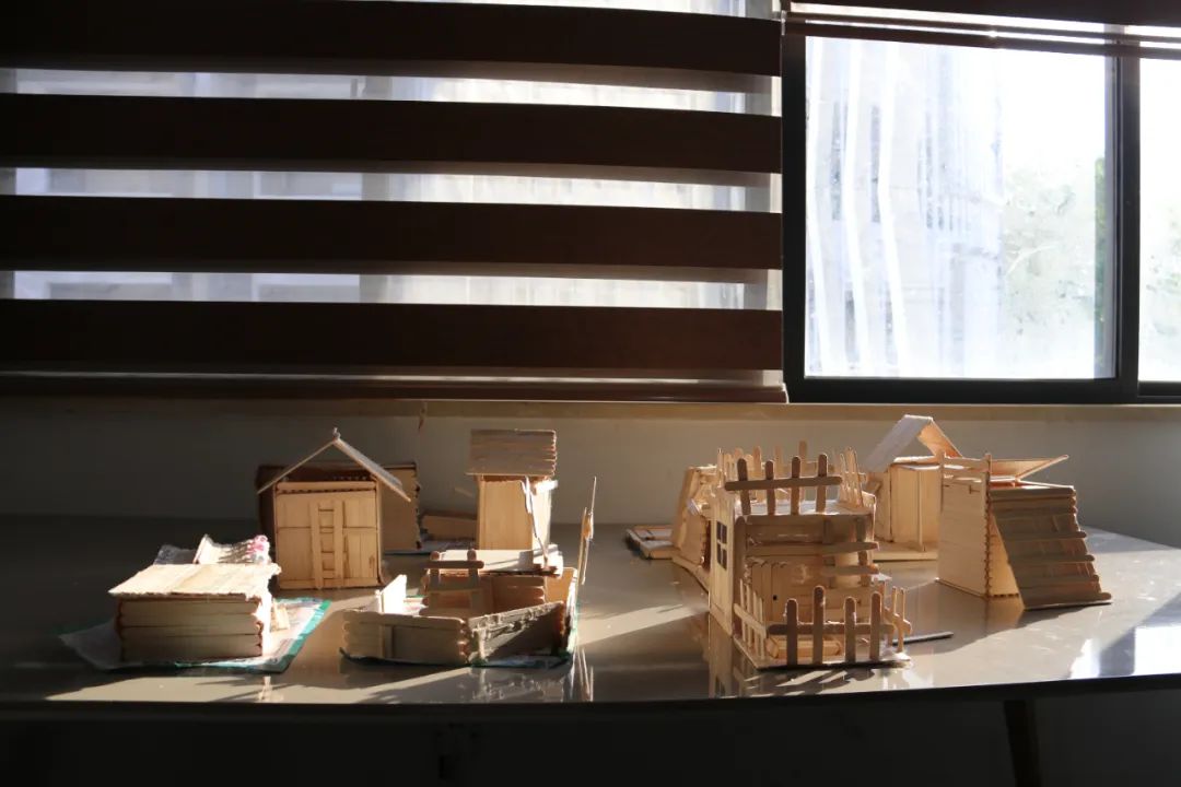 活动中,大学生志愿者们发挥自己的专业特长,向孩子们讲述历史气息浓厚的温州古建筑,并以图文影视等方式带领他们观赏鹿城中山公园、江心屿文天祥祠,温州妙果寺、三垟周氏旧宅,龙湾永昌堡、瑞安圣井山石殿、洞头望海楼、乐清百岁亭等古建筑,讲述一个个有趣的故事。在孩子们一声声惊叹中,进入到本次课程的高潮部分——化身小小建筑师,搭建独特风格的建筑。大学生志愿者们将孩子们分成多个小组指导他们设计建筑图并动手实验,引导孩子们建地基、搭木房、配装饰等。在这期间,每一个孩子都积极地参与,表达自己的想法,利用雪糕棍和胶水将想法付诸于作品,最后的成品都栩栩如生。