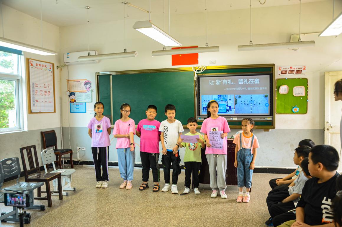 “浙风十礼”实践队指导老师 郭瑞芬:暑期社会实践是一堂“行走的思政课” 让“浙风十礼”传进乡村的学校 在实践当中可行可感可看 同时也让我们大学生能够走出校园 锻炼自我的能力 在这个乡村生活当中 在文成能够展示看到更加广阔的一个天地。