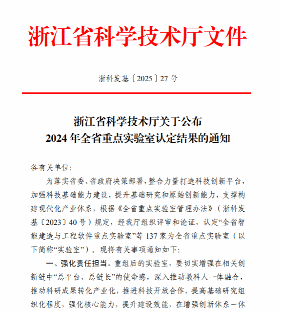 近日,浙江省科学技术厅公布了《关于2024年全省重点实验室认定结果的通知》(浙科发基〔2025〕27号),由中文字幕av