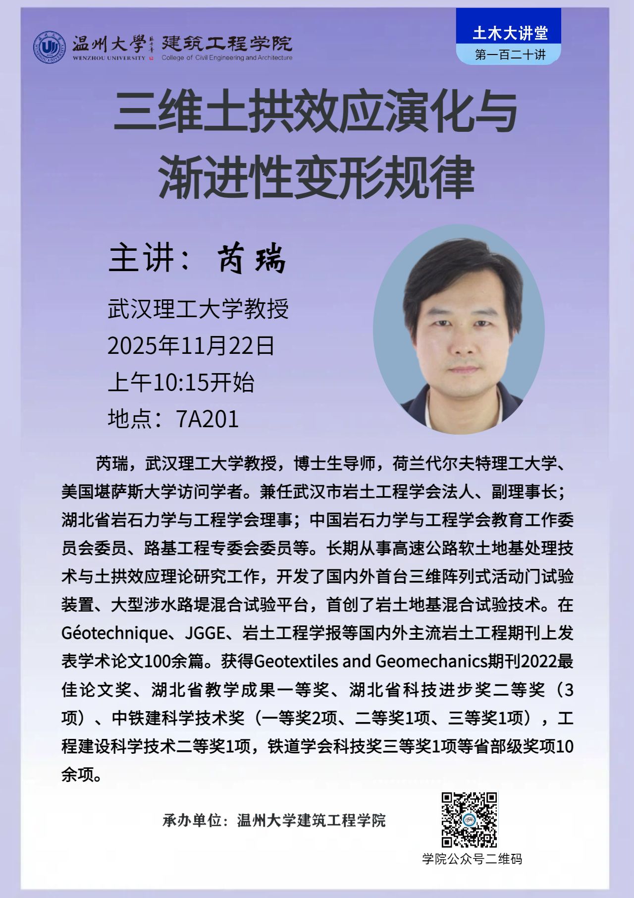 学术讲座预告:三维土拱效应演化与渐进性变形规律