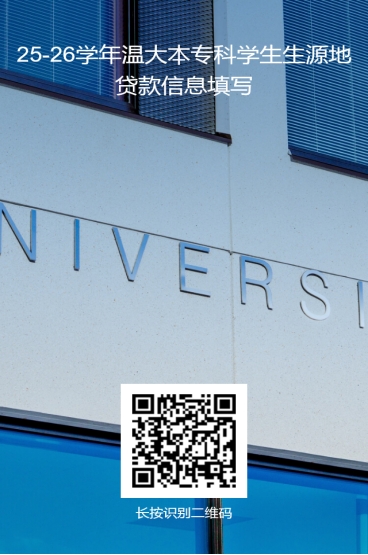 根据国家开发银行生源地信用助学贷款手续办理的要求,学生在生源地办理完信用助学贷款后,需要高校在限定时间内进行网上回执录入,请各班级通知办理国开行生源地贷款的新老生,务必在9月20日前在网上完成《温大本专科学生生源地贷款信息填写》,二维码如下:
