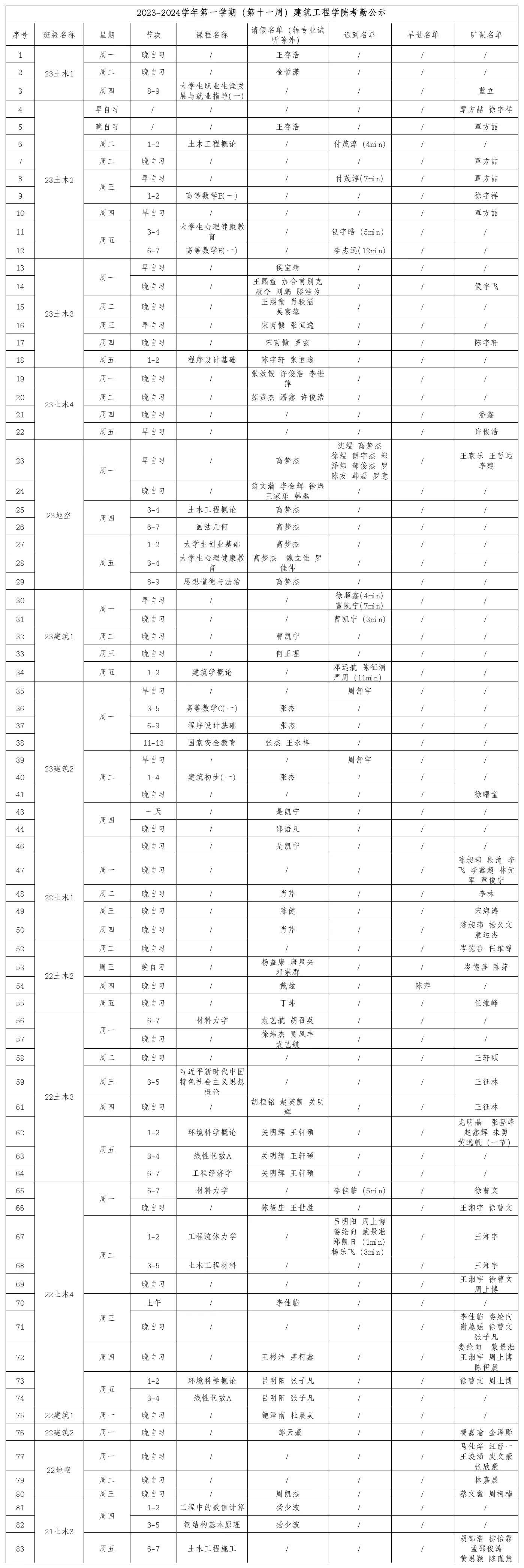 2023-2024学年第一学期(第十一周)中文字幕av 考勤公示