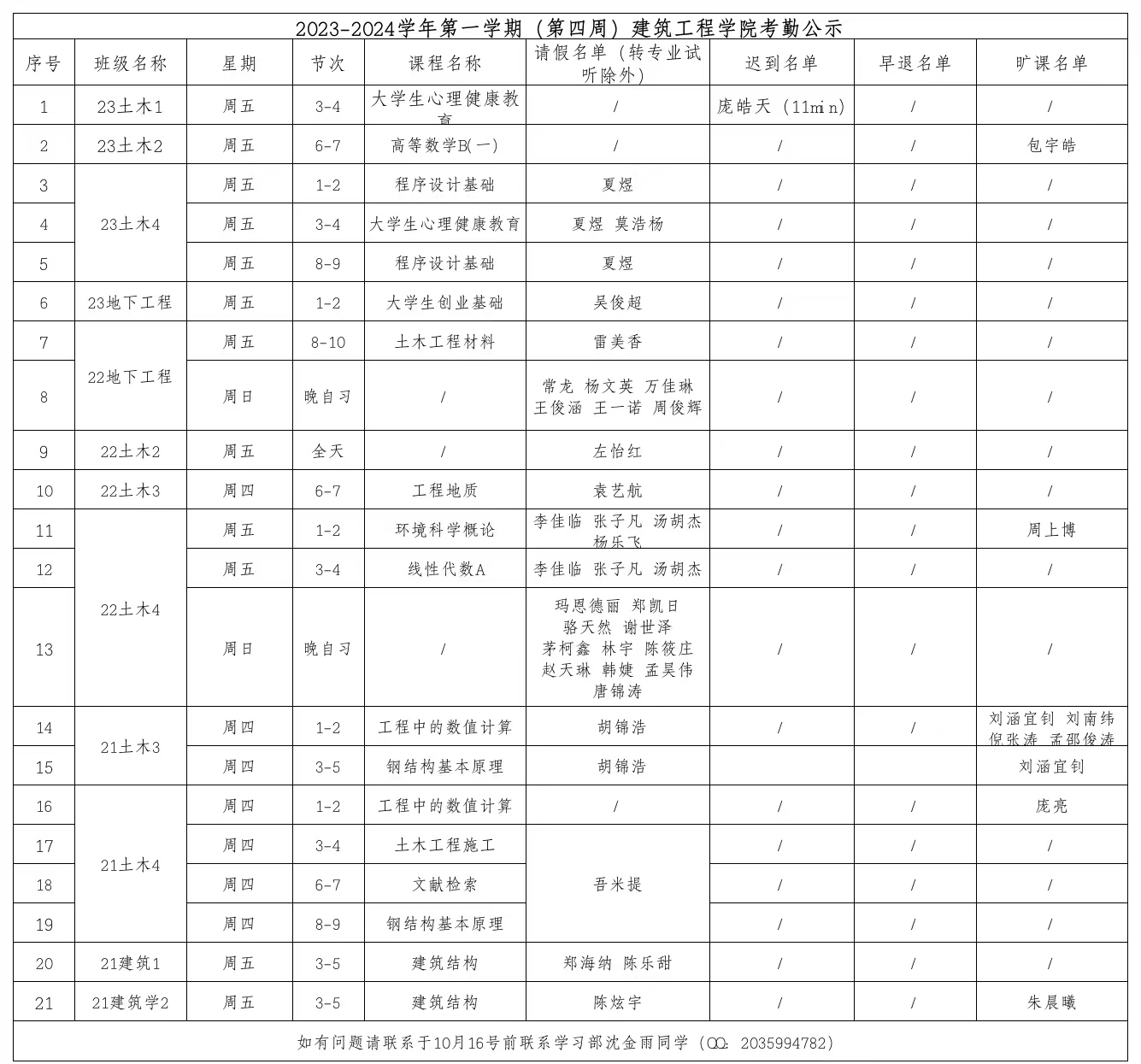 2023-2024学年第一学期(第四周)中文字幕av 考勤公示