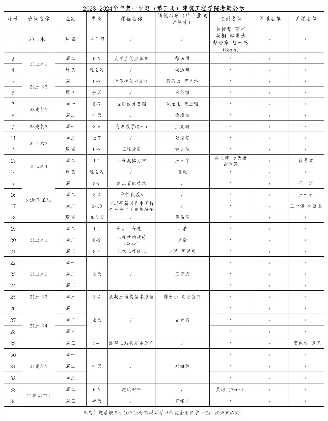 2023-2024学年第一学期(第三周)中文字幕av 考勤公示