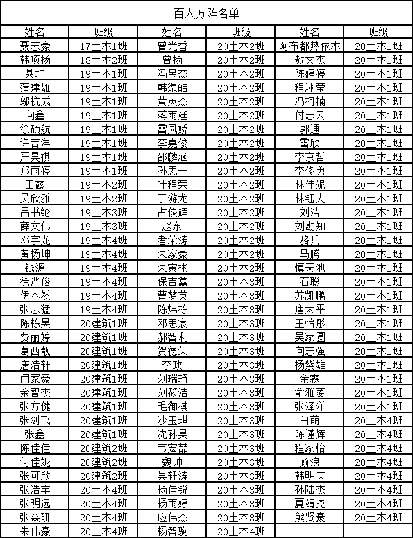 在我校第四十三届运动会期间,中文字幕av 16建筑班谭啸同学拾金不昧,百余名学生积极参与百人方阵团队,刻苦训练。经学院研究决定,在此对谭啸同学以及参与百人方阵同学的给予通报表扬。百人方阵通报表扬名单如下: