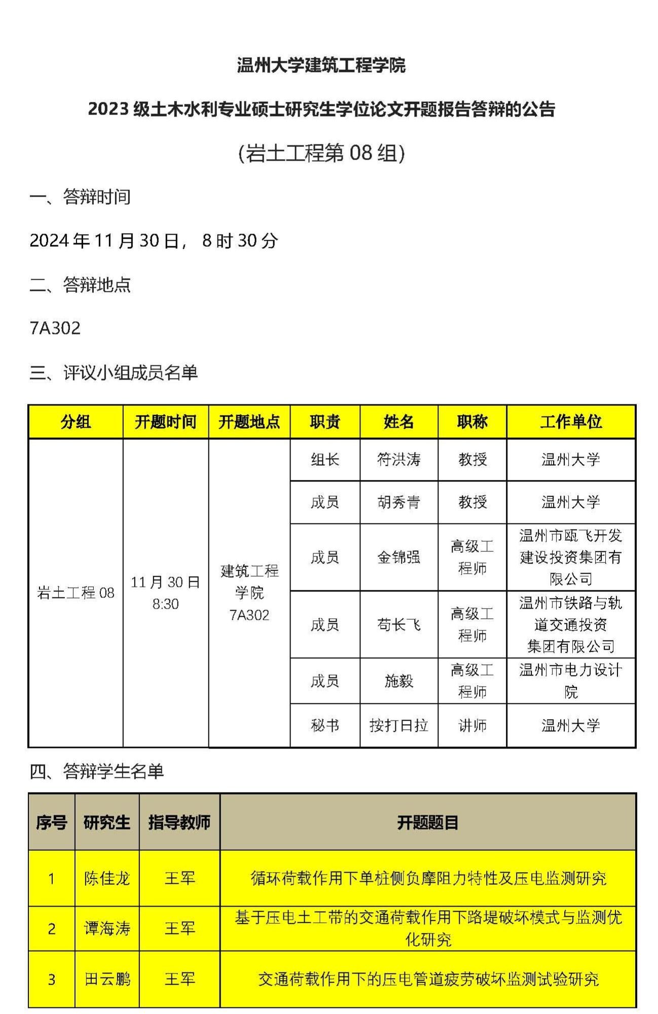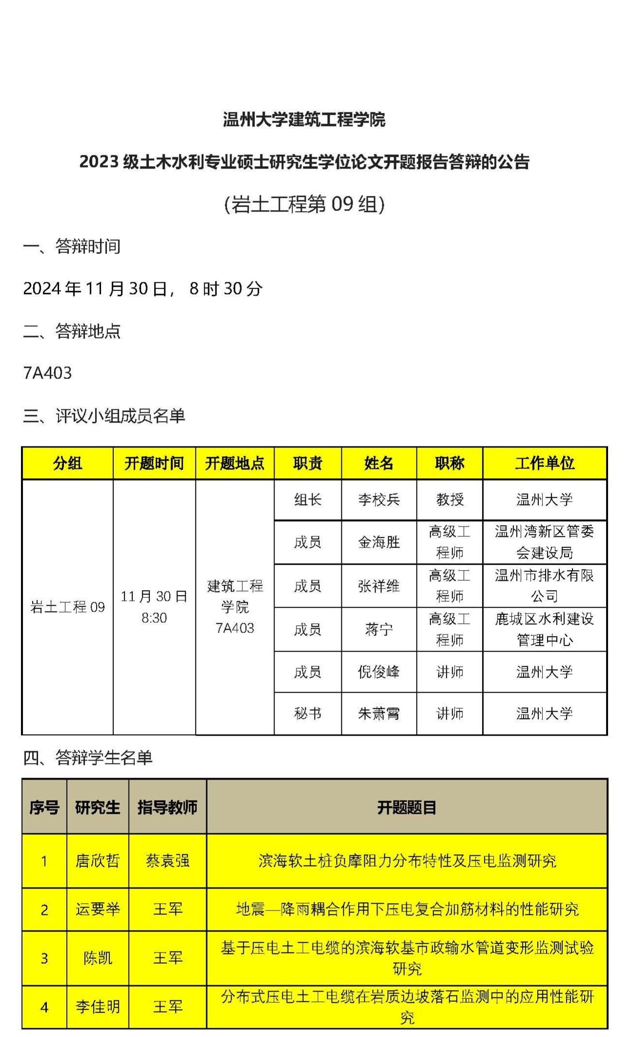 2023级专硕研究生学位论文开题报告答辩公示(九)