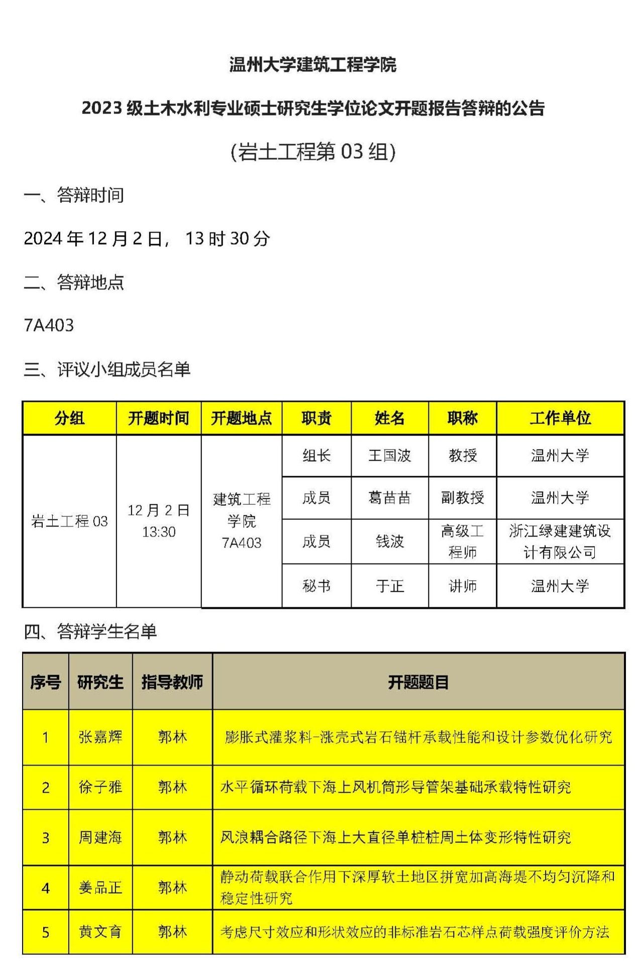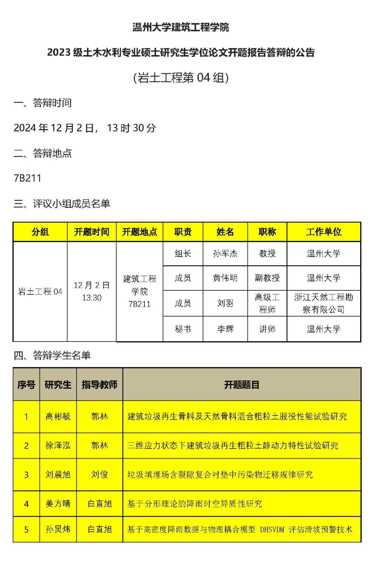 2023级专硕研究生学位论文开题报告答辩公示(五)
