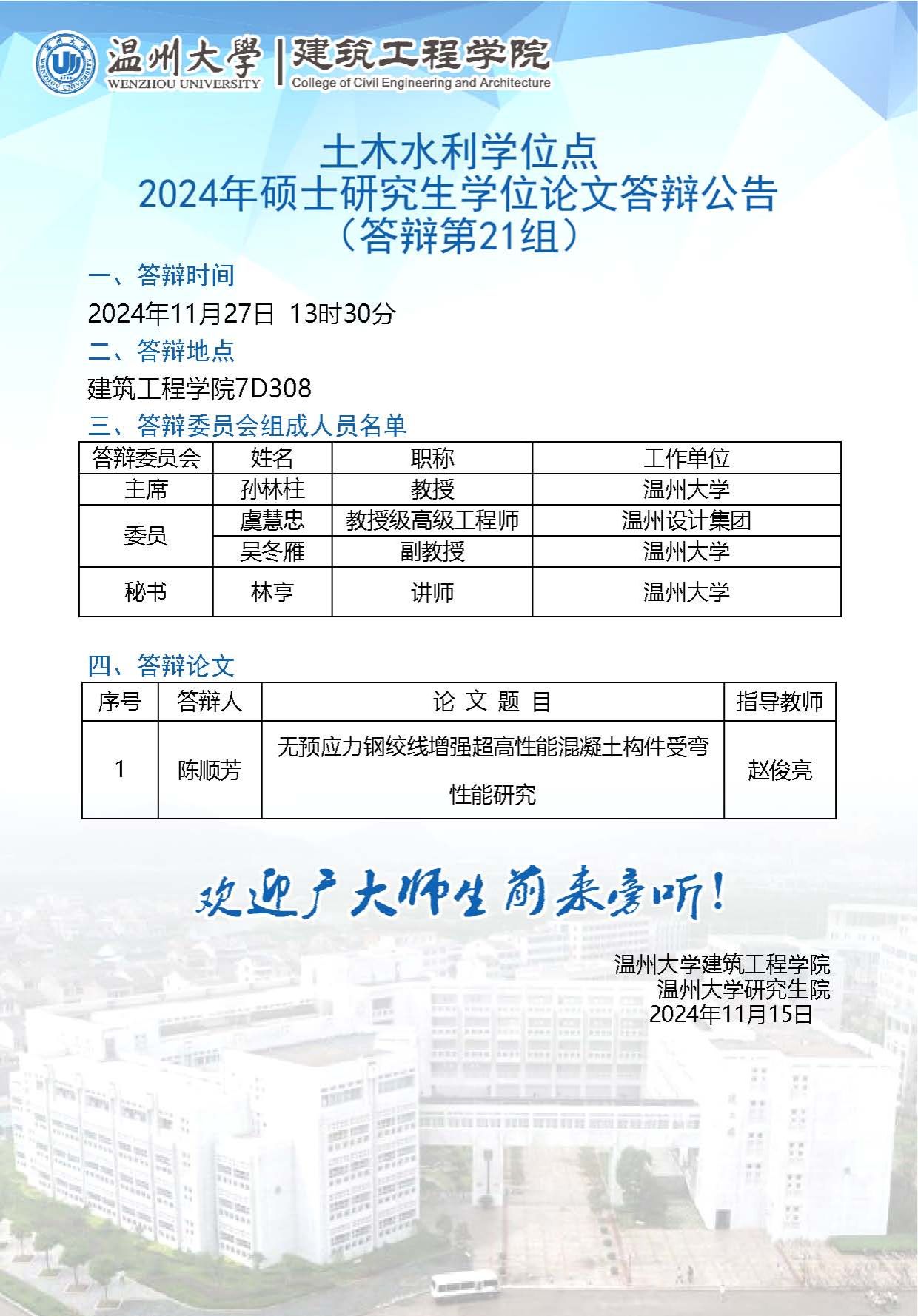 中文字幕av 土木水利学位点2021级硕士研究生学位论文答辩公告(九)