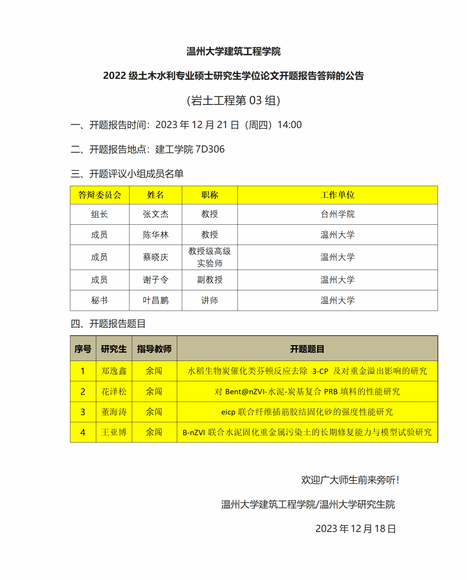 2022级硕士生学位论文开题报告(二)