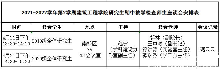 2021-2022学年第2学期中文字幕av 研究生期中教学检查师生座谈会安排表