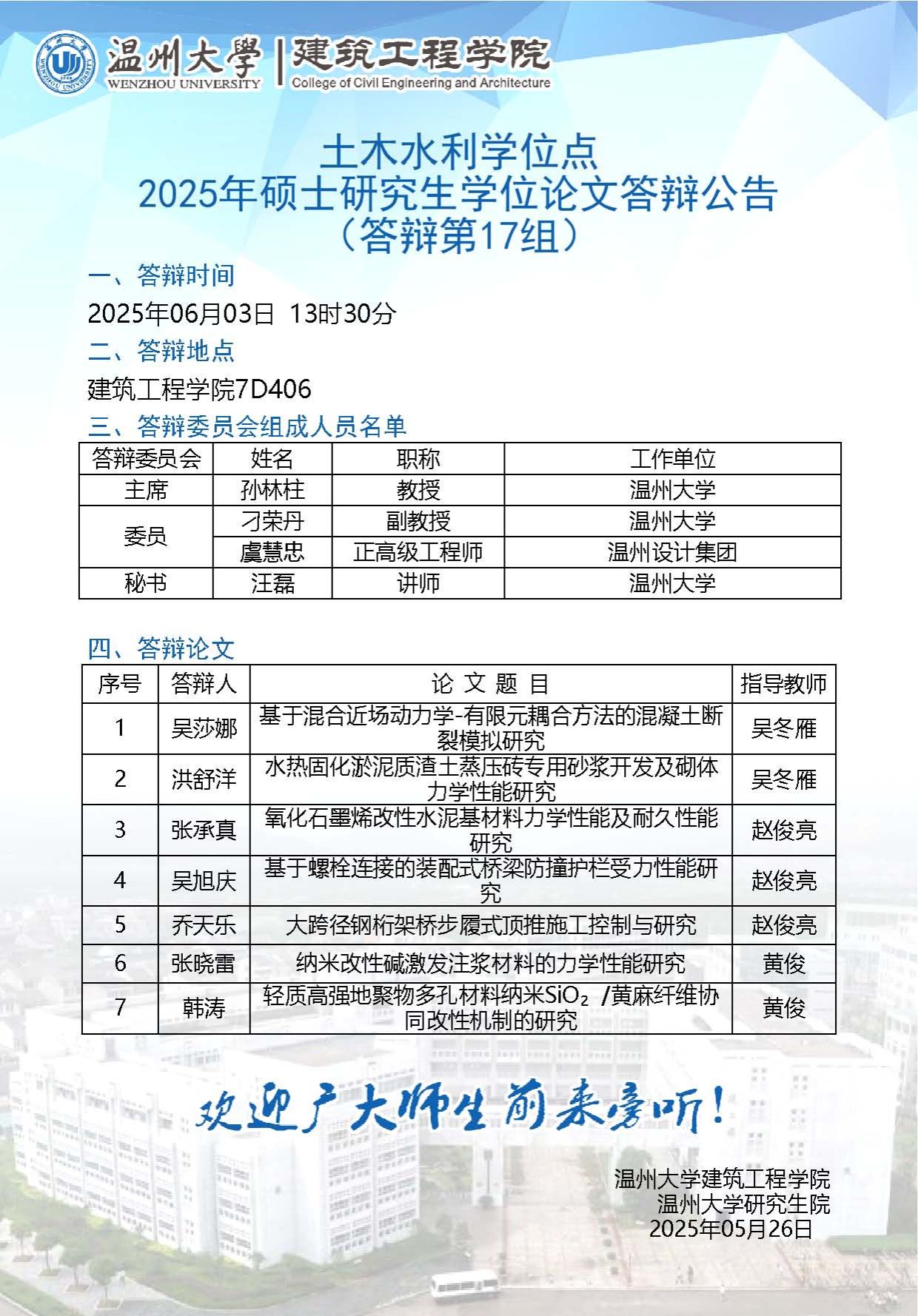 中文字幕av 2025届(六月)硕士研究生学位论文答辩公告(六)