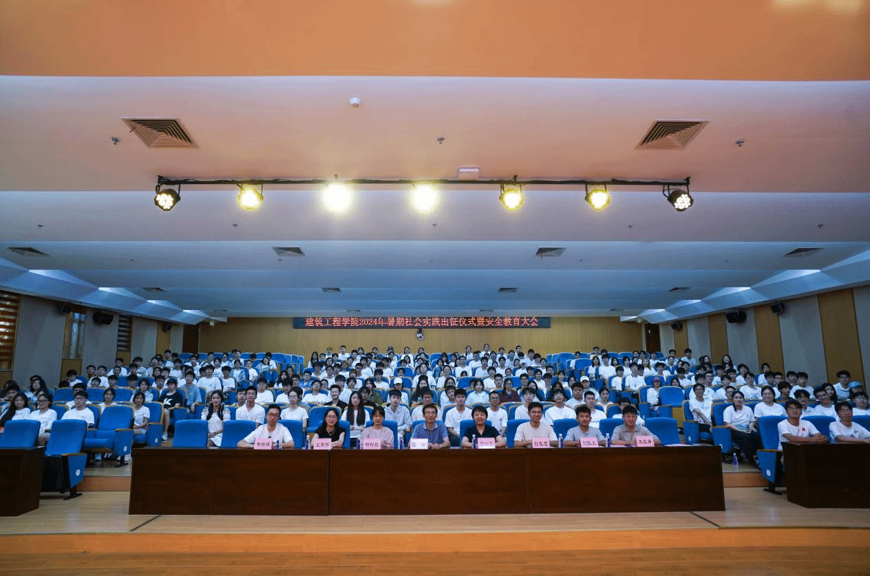 于2024年7月5日下午在岩松堂步青厅举行2024年暑期社会实践出征仪式暨安全教育大会。出席仪式的学院领导和老师有党委副书记陈铎,学工办主任、团委书记郭瑞芬,辅导员黄骑骥、刘臣玉、杨程程、王赛梦,各实践队指导老师和全体实践队队员。本次出征仪式由团学指导老师朱宸希主持。