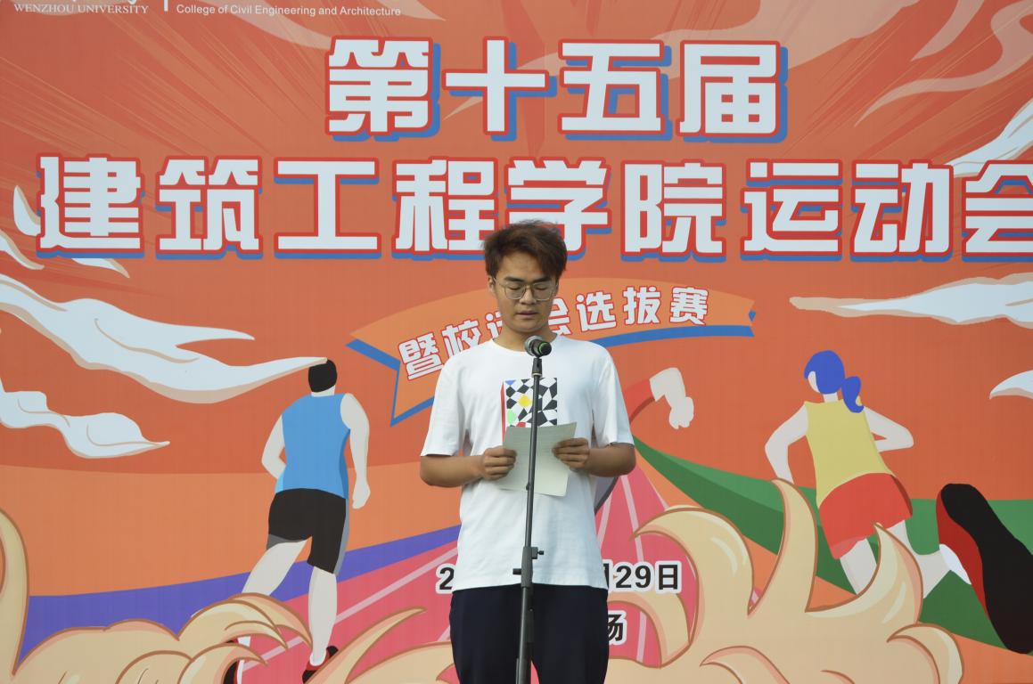 王中对副书记致院运会开幕辞。他指出,本次院运会是一个选拔赛,要选出校运会参赛选手;是一个动员令,希望大家养成热爱运动的习惯;是一个大舞台,期待看到一个个精彩、感动的画面。他希望本次院运会,一要赛出水平,让真正有水平的运动员脱颖而出;二要展示风格,赛出同学情谊、赛出建工形象;三要确保安全,全体运动员要树立“安全第一”意识,全体学生要遵守规矩、服从管理、维护秩序,后勤保障要到位,按需供应饮用水、食物等,备好急救药箱等。