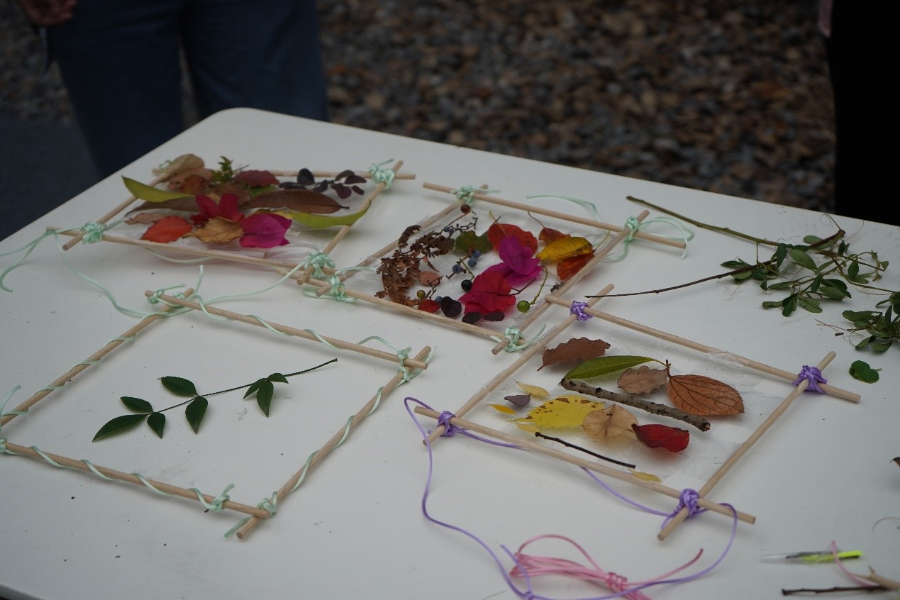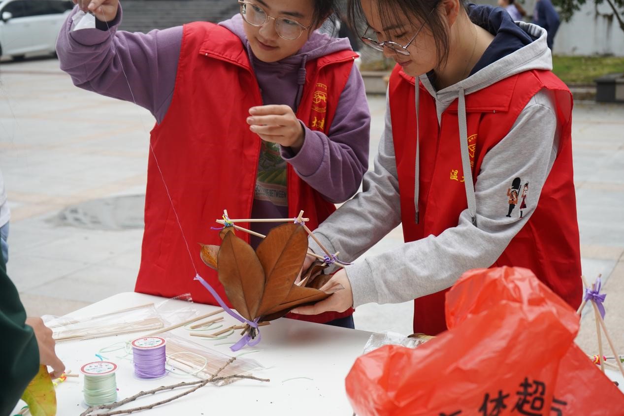 活动中,他们巧用胶带和木棒制作属于自己的艺术品,使出十八般武艺展示自己的“实力”,展开了一场悄无声息的“比试”。有的人用小木棒组成千奇百怪的形状,有的人用树叶堆叠成栩栩如生的图画……用一幅幅富有创意的落叶拼贴画,定格秋天的最美瞬间。