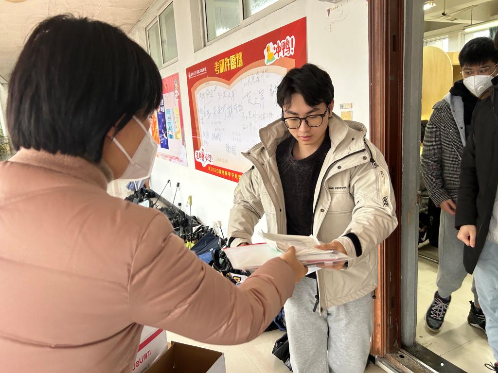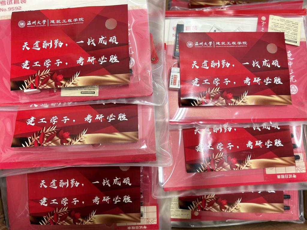 考研学子都能在最后的备考日子里调整心态、树立信心,学院为他们准备了特别的心意——考研文具套装,并送上了暖心的祝福,让冬日的备考更加温暖。除此之外,为防范新冠疫情,保障考研学生的健康状况,学院为每位考生准备了N95口罩以备不时之需。