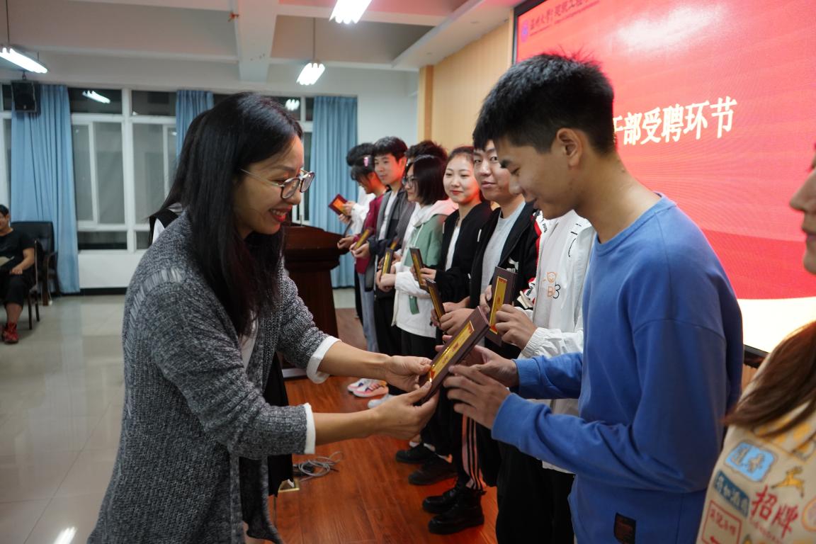 团干培训正式开班。紧接着,出席会议的各位嘉宾领导对学生干部进行受聘仪式,并拍照合影。