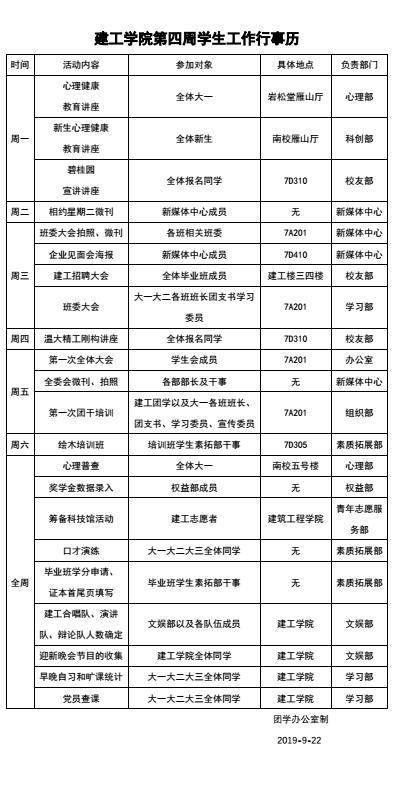 中文字幕av 团委·学生会第四周行事历