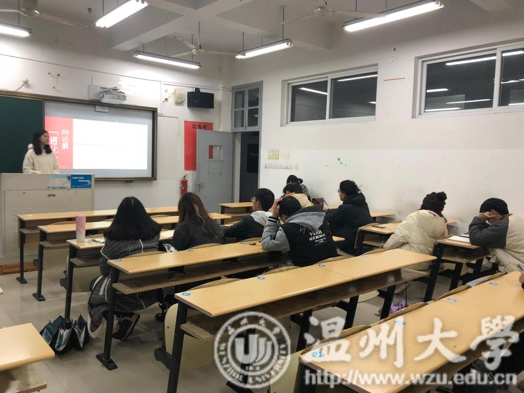 培训伊始,宋艳首先向队员讲述辩论的演变过程,从老国辩到新国辩再发展成为如今多元化的辩论时代,然而论证和反驳一直是多年来固定不变的核心。紧接着,宋艳向大家介绍了辩论队员需要具备的条件以及辩论中所需掌握的基本技能,即听、说、思。 她还根据自己积累的经验,对辩手们的职责以及如何进行驳论和对辩进行详细地说明,并向大家阐述了常用的最佳定义法,这要求选手们在辩论中选择相对中立客观的论证。另外,宋艳罗列出准备一场辩论赛的几个步骤:界定辩题,建立论点,搜集证据,构建方案,赛前演练等,并希望大家能够重视批判性思维在辩论赛中的重要性,在此次培训的基础上,多观看和复盘比赛,学习更多技巧,从而打破自身桎梏。