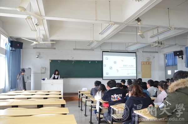接下来是颁奖环节,由学生会副主席虞林臻、张振华分别为每月之星和星级个人获奖人员颁奖,并合影留念。大会的最后是刘明媚学姐发言和辅导员