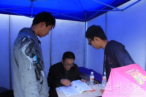 招聘会伊始,天空虽然下着大雨但温大学生的热情丝毫未减,同学们都积极参加各个企业的招聘,人山人海。来招聘的公司中有关建工学院的企业有浙江三建建筑公司、万洋房地产公司、泰昌公司等。建工学院还将本学院部分毕业生的信息编辑成册,为学生就业提供了更多的机会。在招聘会中许多同学都向心仪的公司投出自己的简历,希望找到自己想要的工作。