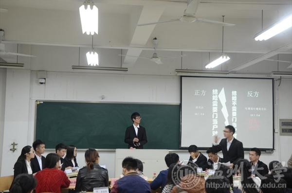 首届辩论赛的决赛在南校7D410如期举行。现场评委有辅导员张晓婷、马克思主义学院研究生,到场嘉宾有吴冬雁老师、孙琦老师和郭林老师。