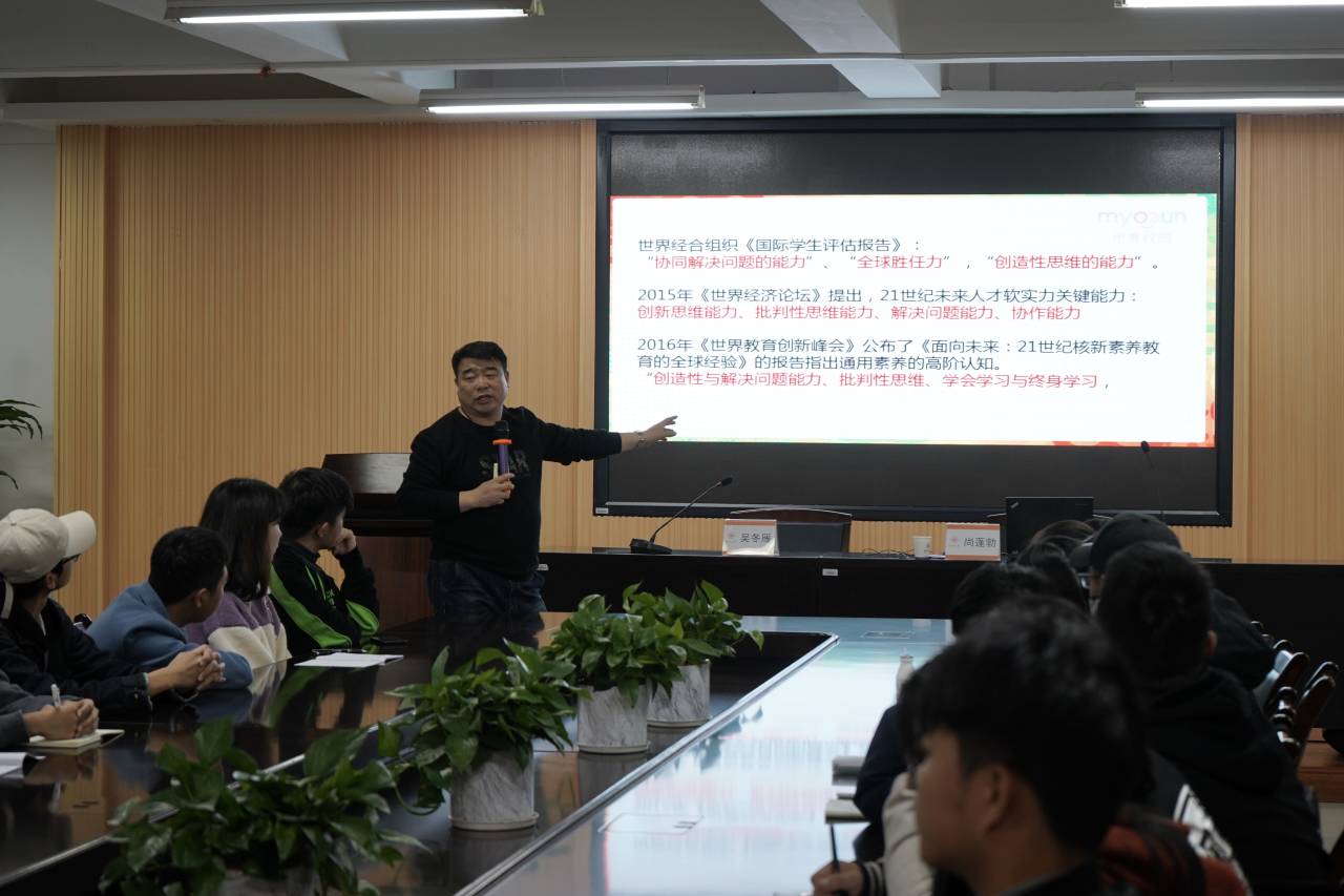 大会伊始,吴冬雁老师先是介绍了大赛的背景以及奖项设置。讲座部分,尚蓬勃老师分两部分对这项竞赛备战进行了指导。首先,他简要介绍了今年的大赛情况并指出浙江高校不缺乏创业氛围。紧接着,尚老师提到不同时期对人才及国家的素质要求是不同的,建议同学们应结合当下时事热点和高校的创新背景,理清此次赛事的重要性。其次,尚蓬勃老师从“懂规则、抓原点、炼表达、促行动”4个方面详细讲述了如何备赛,并以顺口溜的形式将要点串联了起来。期间,以生动形象的例子、幽默风趣的讲解方式、活泼却又不失严谨的互动方式,将同学们在确立创业项目、路演等过程中的注意事项娓娓道来,让大家对“互联网+”大赛有了更深入的认识和全新的了解。