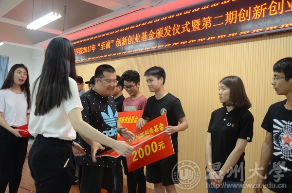 学院党总支副书记叶正飞宣读获得此次“至诚”创新创业基金的名单。此次出席领导分别为受奖助的重点团队、优秀团队、优秀创新创业个人、优秀创新创业项目颁奖。