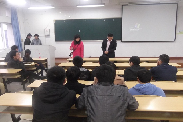 11月28号下午3:00,浙江诸安建设集团有限公司于7D302召开该公司专场讲解会。出席本次讲解会的有诸安公司招聘负责人徐春玲,人事部负责人陈莉莉,工程师何洪匡以及建工学院团委书记徐家博。